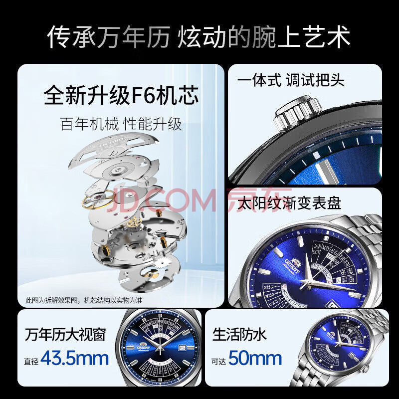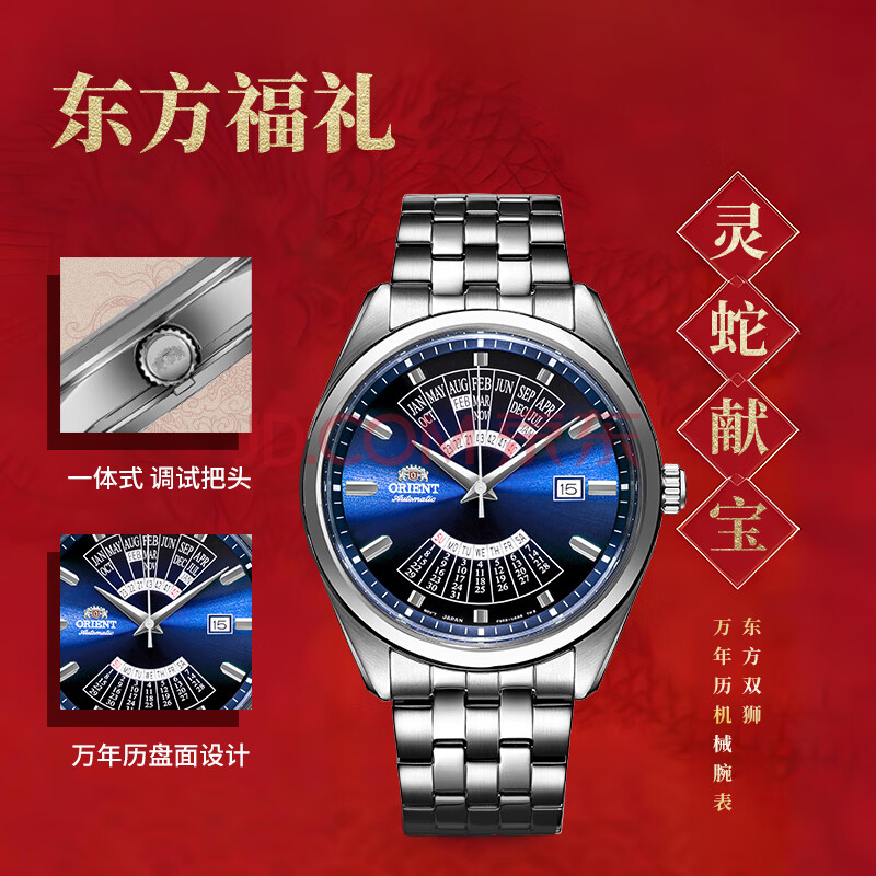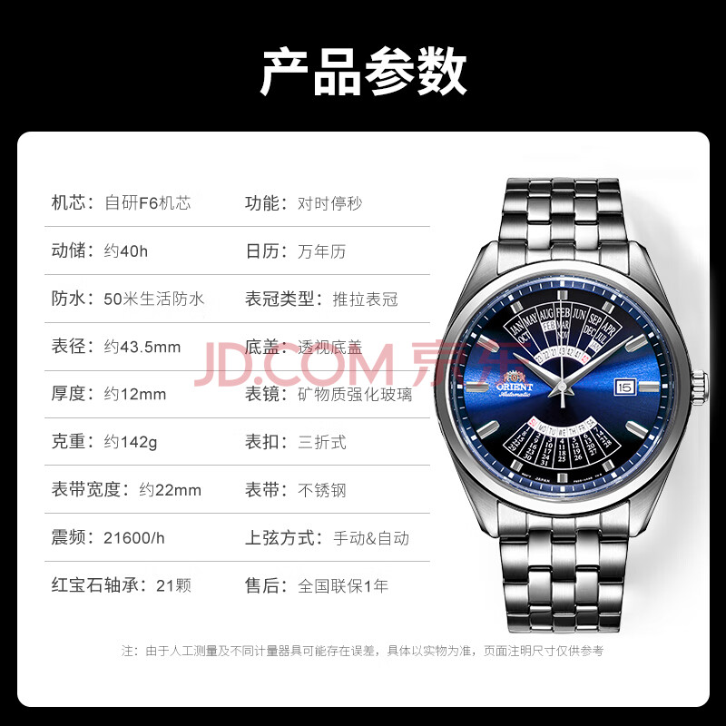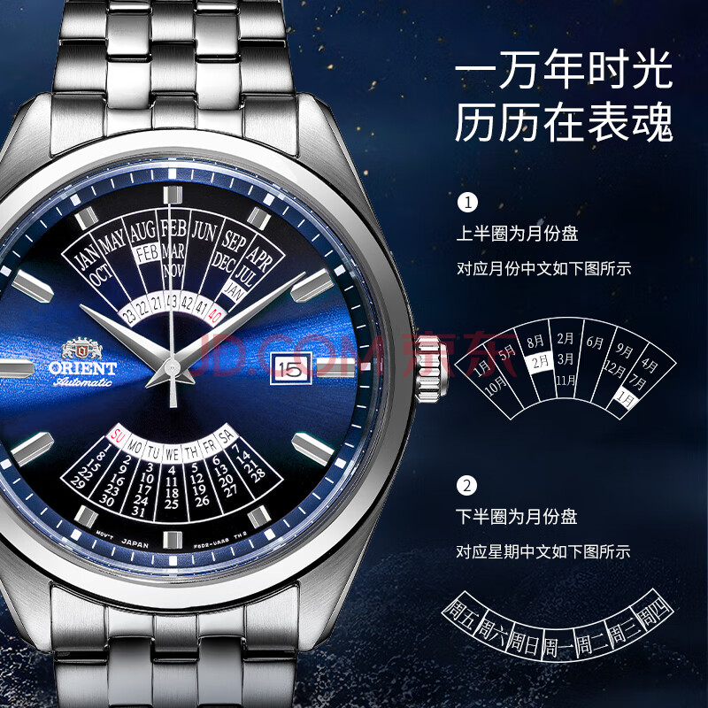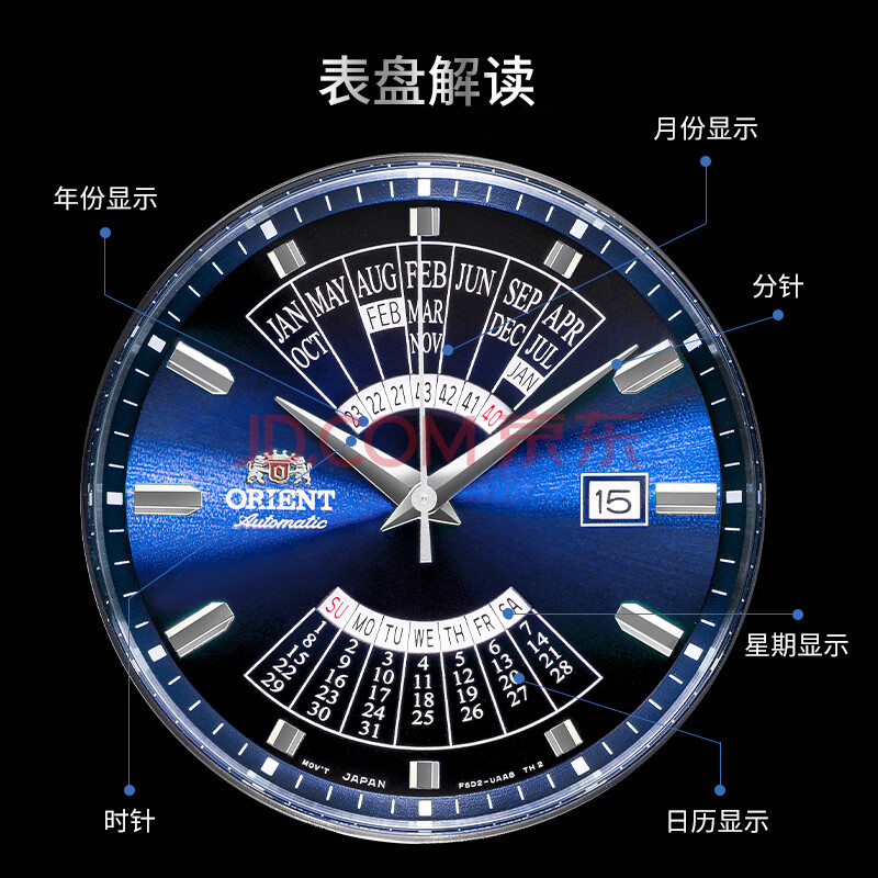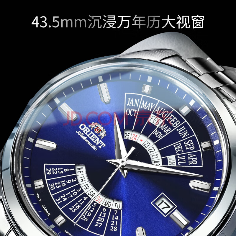 商品相册:ORIENT东方双狮手表男日本全自动机械表万年历商务大表盘男表BA0003L19B第