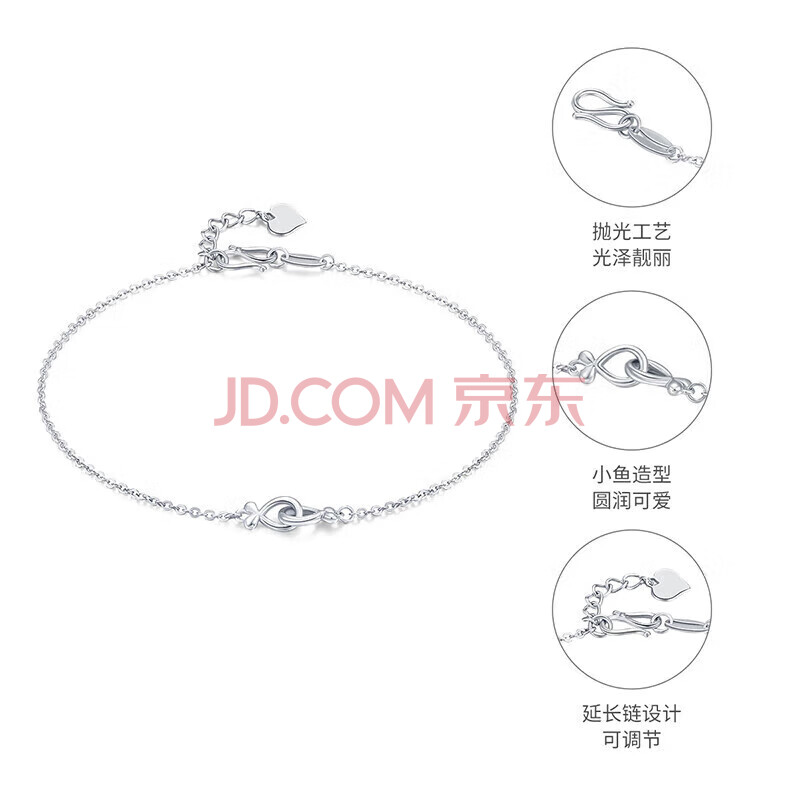 商品相册:梦金园铂金手链PT950鱼生有你白金手链女款生日礼物第1张/共7