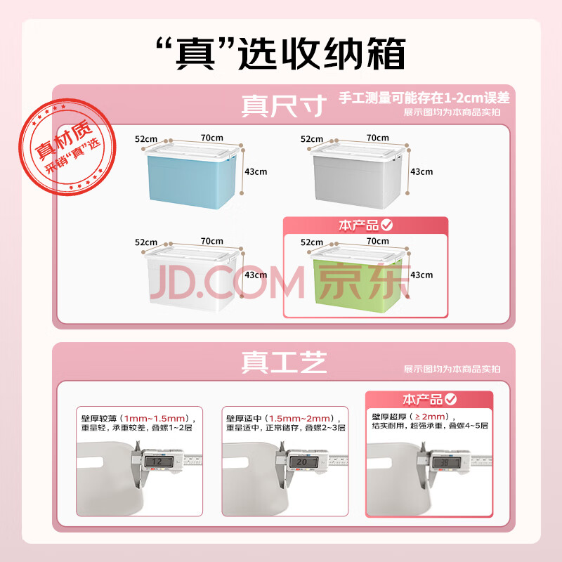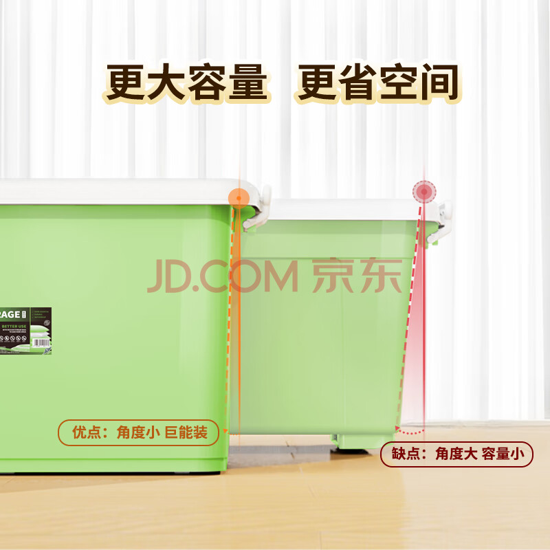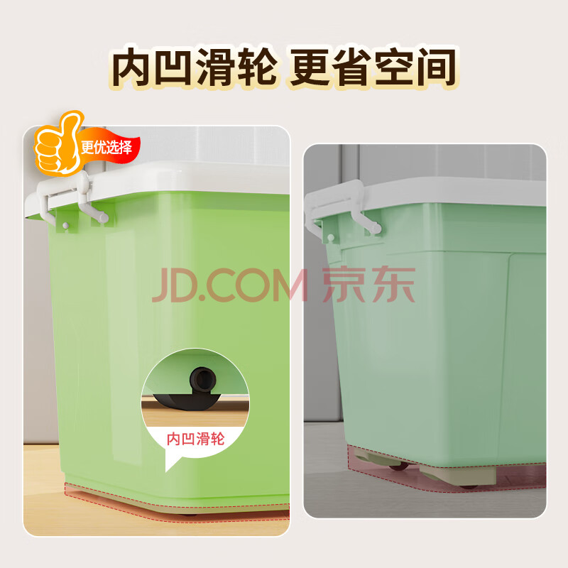 商品相册:清野の木 衣物收纳箱特大号塑料整理箱110L绿色 1个装 带轮第