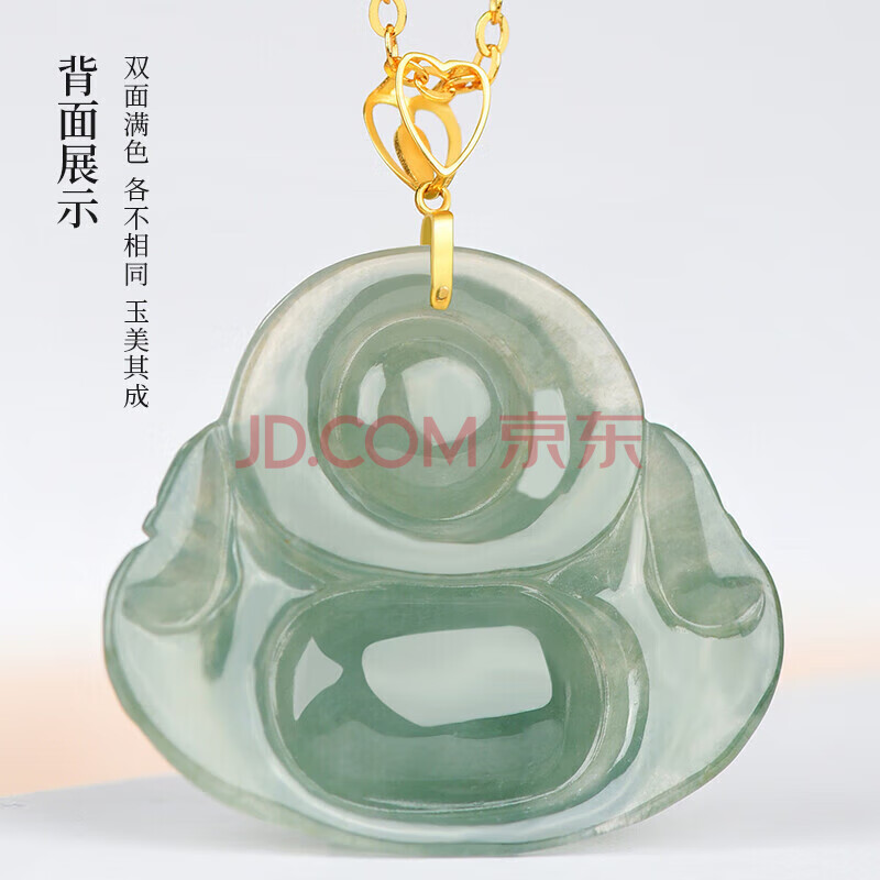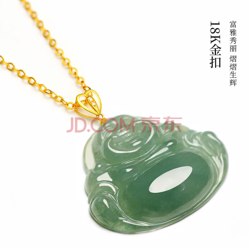 商品相册:凤禧珠宝18K金镶玉翡翠玉佛吊坠女士款弥勒佛天然玉石项链生日礼物第