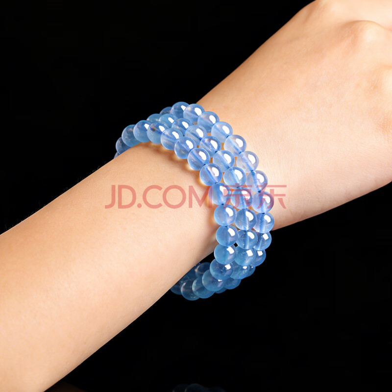 商品相册:石玥珠宝海蓝宝石手串本命年转运珠多圈水晶手链男女士款礼物 5-6mm第