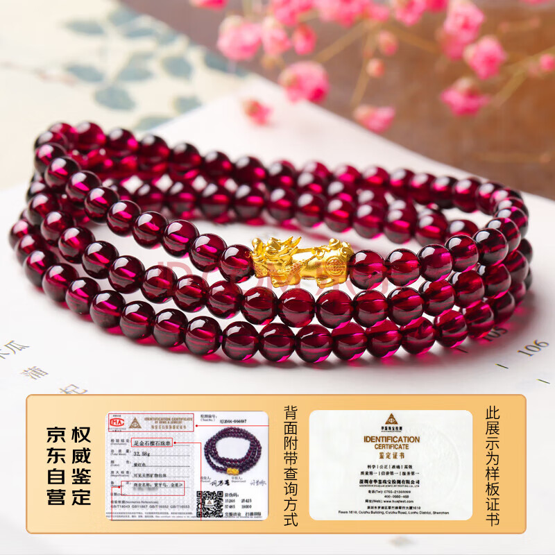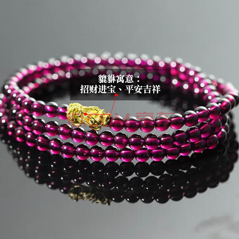 商品相册:石玥珠宝 精品5mm紫牙乌石榴石手链项链黄金貔貅天然手串男女士款水晶玛瑙第