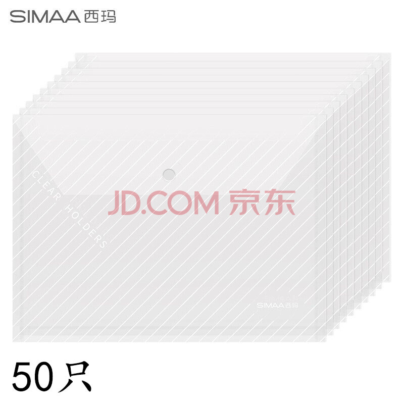 商品相册:西玛(SIMAA)50只装 A4按扣学生透明文件袋 条纹加厚 防水试卷资料收纳袋 办公文件档案袋 文具 20562第