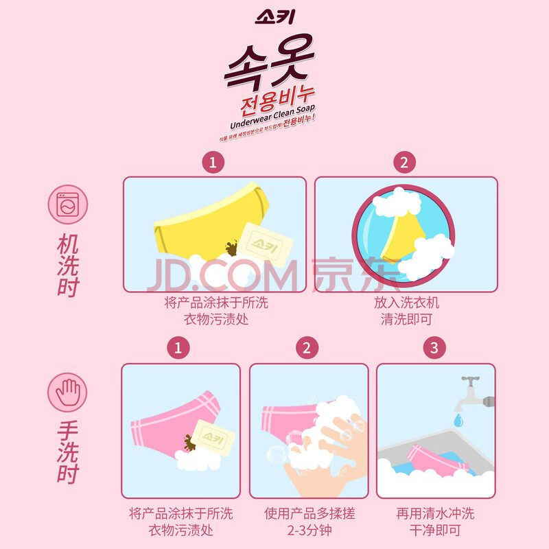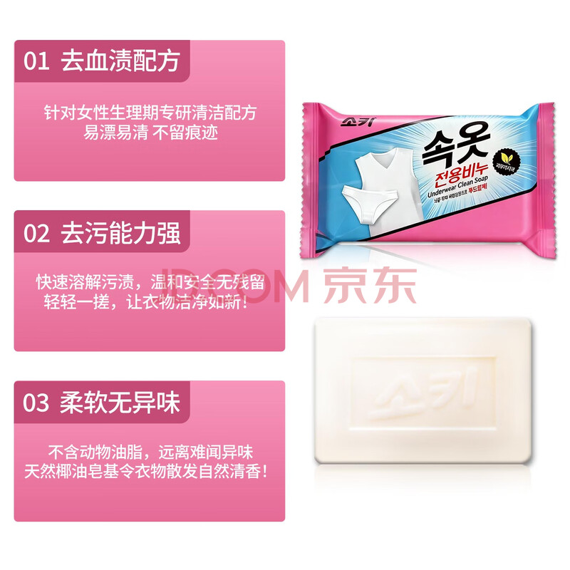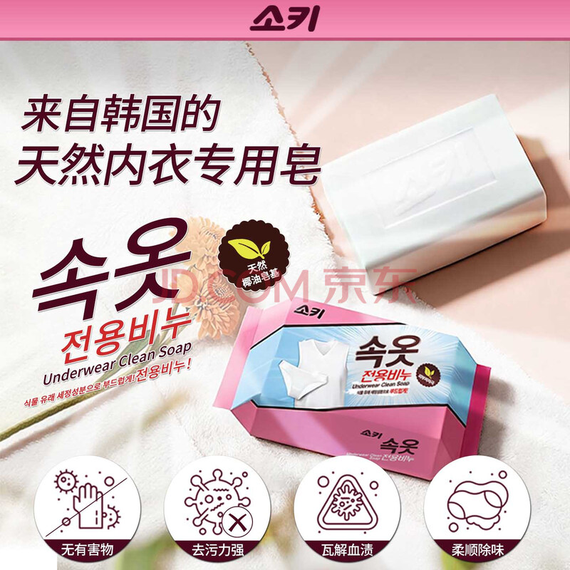 商品相册:無瑾花 韩国进口 女士内衣洗衣皂肥皂150g×4块 天然椰油皂基 瓦解血渍第
