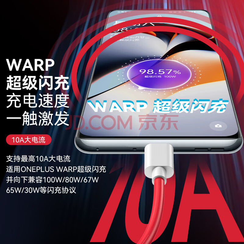 商品相册:轩邑 适用一加数据线Warp超级闪充Type-C一加100W/80W充电线13/12/11/10Pro/Ace5pro/3v/oppo手机 1.5m第