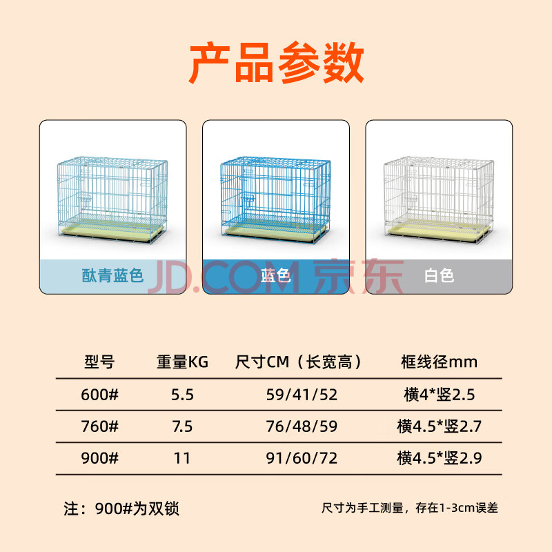 商品相册:宠乐乖(CHONGLEGUAI)狗笼中型犬大型犬宠物笼子加粗折叠带厕所狗窝酞青蓝90第