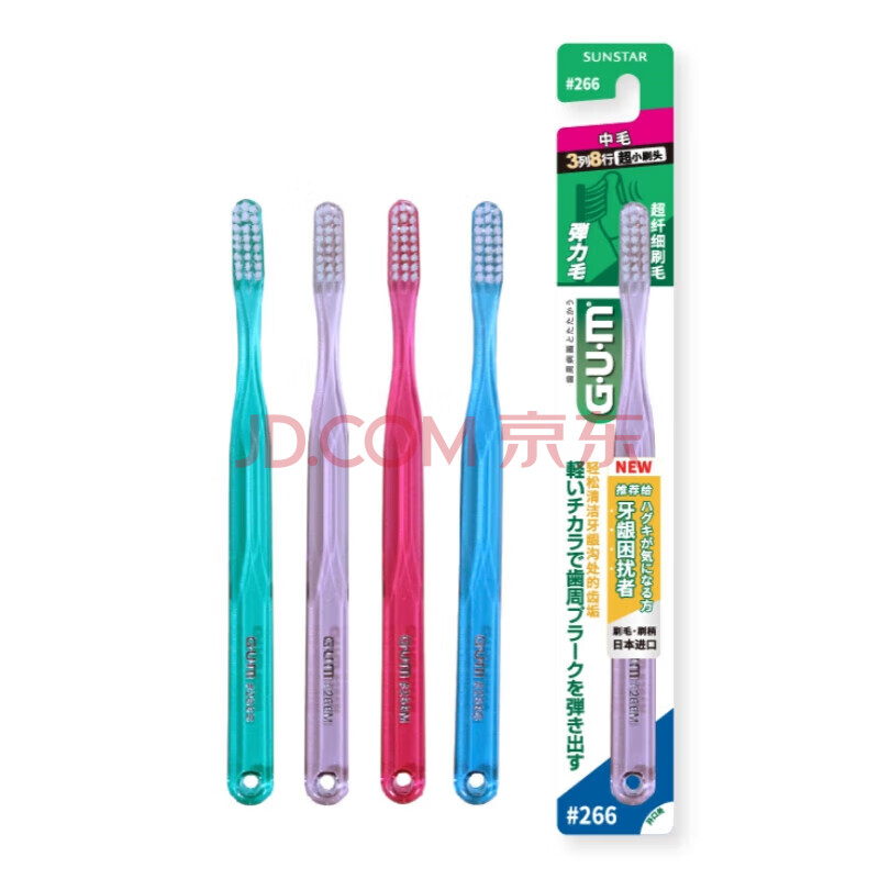 商品相册:G·U·M康齿家弹力纤细刷毛深层洁齿成人中毛牙刷1支装#266(颜色随机)第
