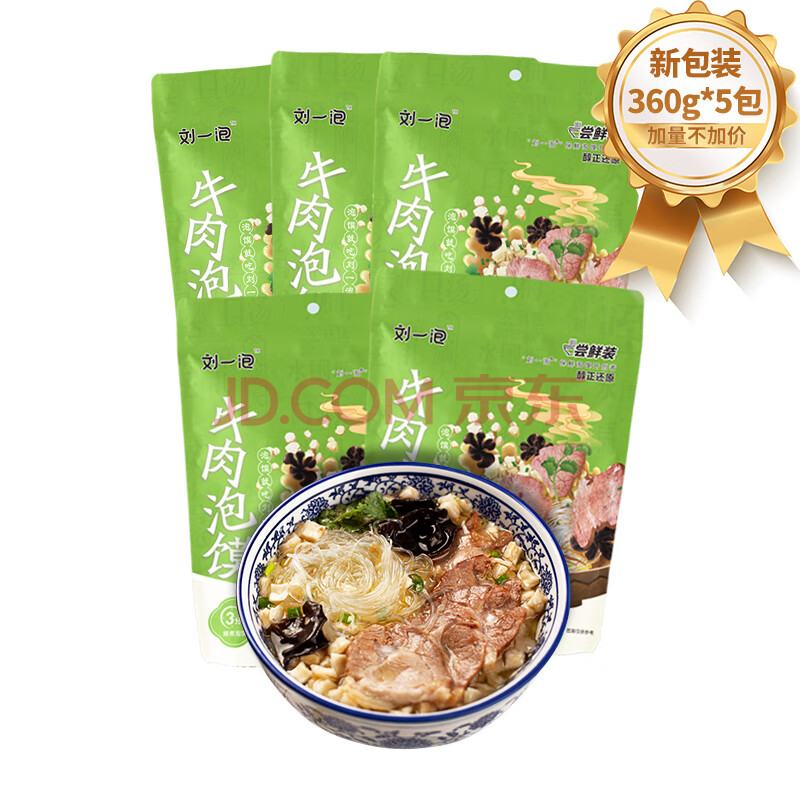 商品相册:刘一泡牛羊肉泡馍小炒正宗陕西特产西安美食方便速食食品 牛肉360g*5包第