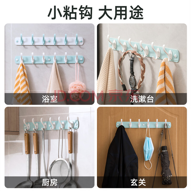 商品相册:茶花排钩 挂钩粘钩 塑料挂衣钩毛巾架 门后厨房浴室挂钩排第