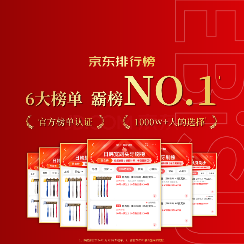 商品相册:惠百施(EBISU)48孔宽头软毛牙刷成人全效Pro深层清洁清新口气4支颜色随机第1张/共5