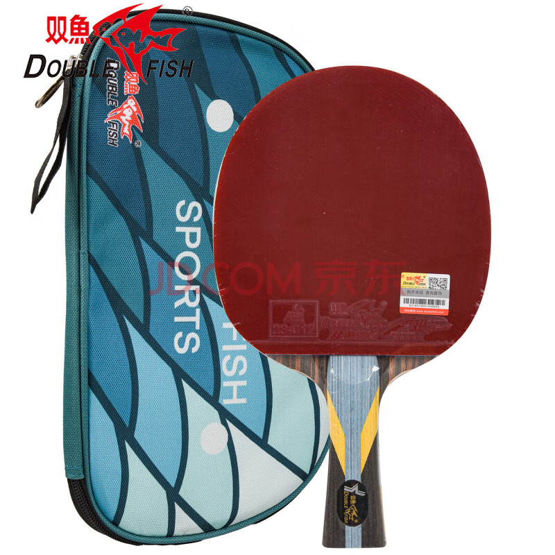 商品相册:双鱼乒乓球拍横拍长柄 9星九星无极蓝海绵双面反胶兵乓球拍 附拍套第