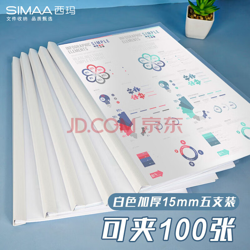 商品相册:西玛(SIMAA)【热销推荐】5只A4/15mm加厚抽杆夹 办公报告夹拉杆夹文件夹资料夹白色 文具 6079第