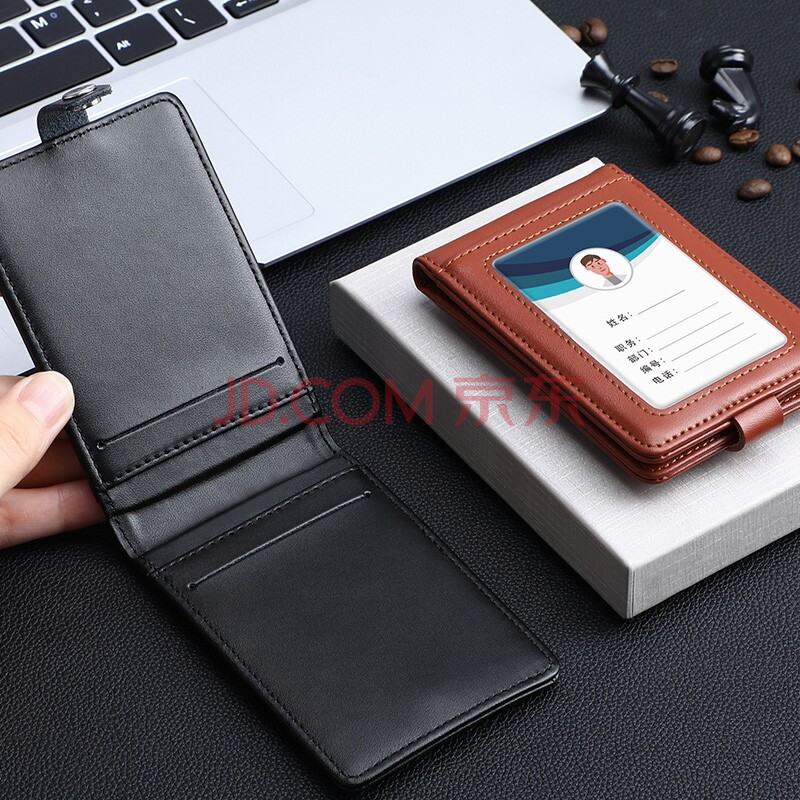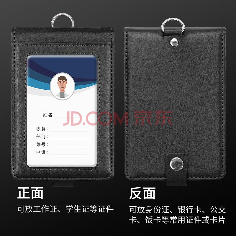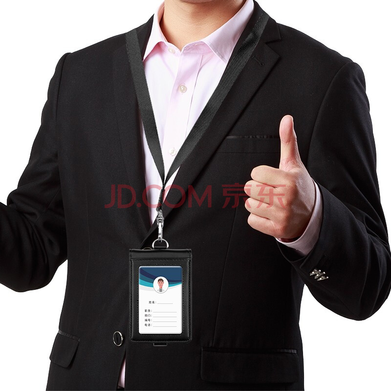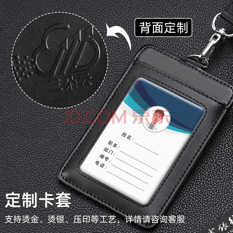 商品相册:嘉然恒真皮工作牌企业员工胸牌证件卡套带收纳卡位挂脖牌会议出入证工作证套牛皮材质可定制 黑色第1张/共9