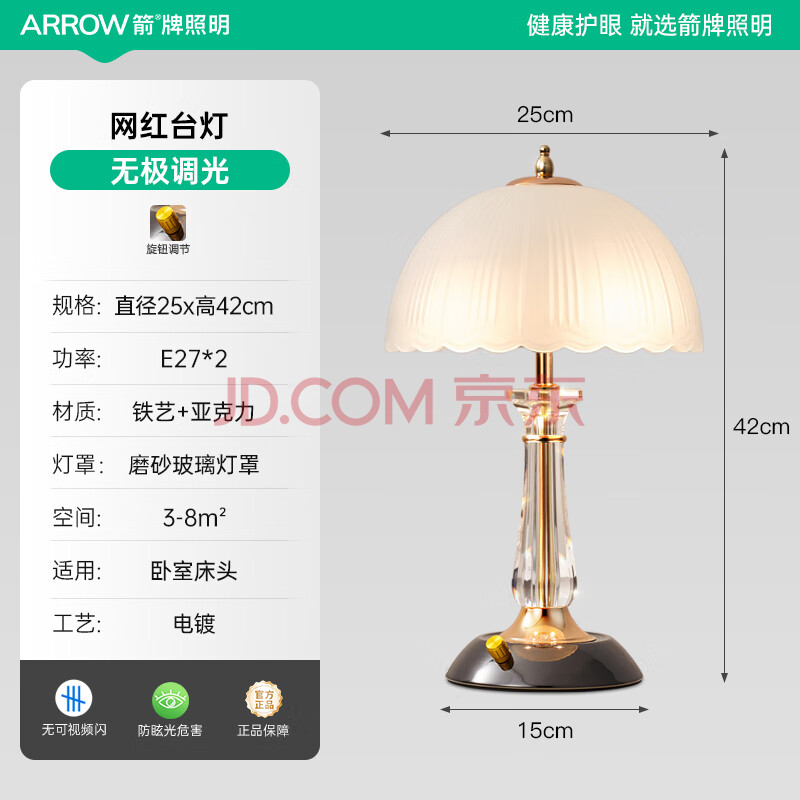 商品相册:ARROW箭牌 卧室床头灯北欧极简护眼台灯温馨书房灯JP1XD0201270第