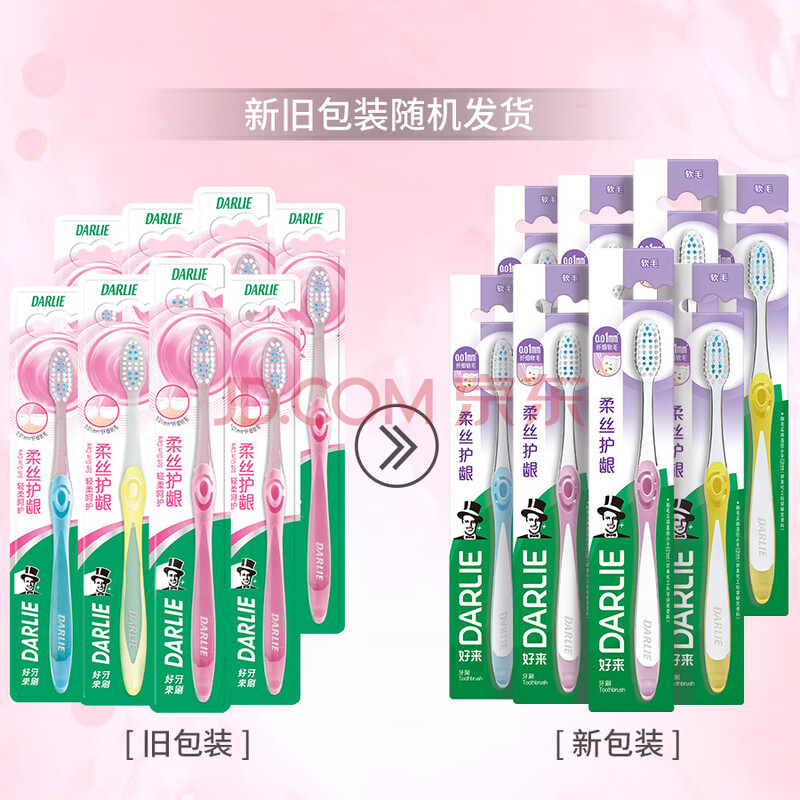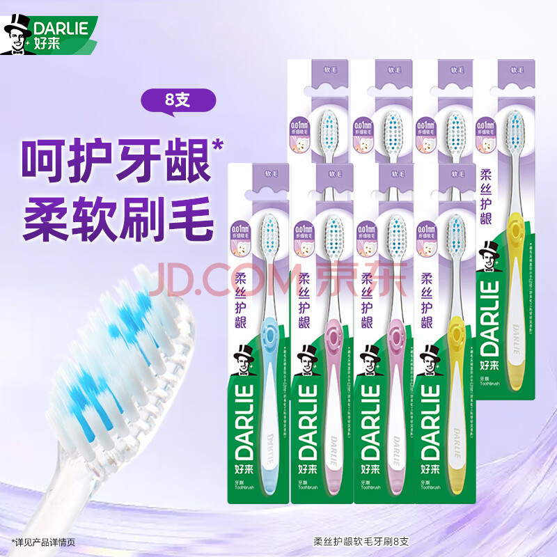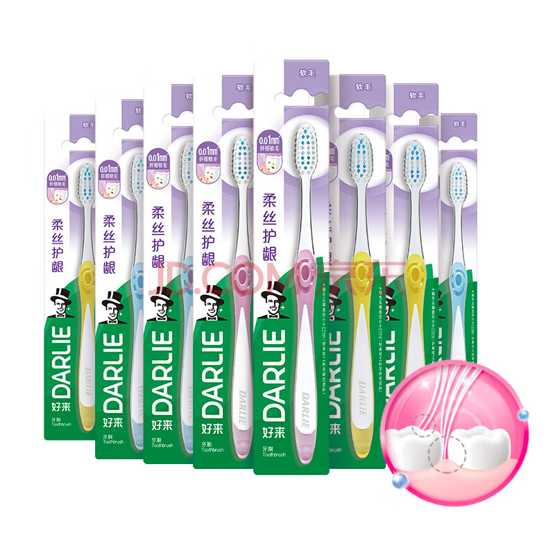 商品相册:DARLIE好来(原黑人)柔丝护龈软毛牙刷 护龈抗敏 8支装 便携装第