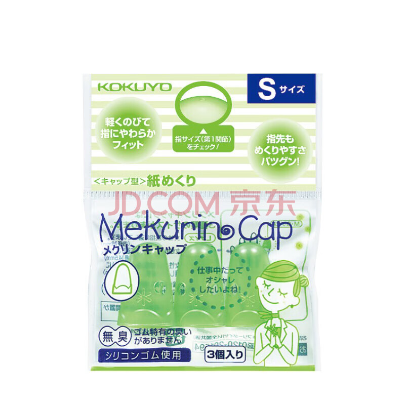 商品相册:国誉(KOKUYO)进口点钞手指套学生办公财务翻页帽型指套 大号18*27mm3个 绿色 MEKU-27TG第