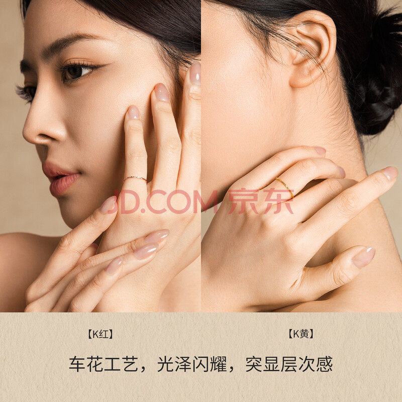 商品相册:周六福黄18K金戒指彩金素圈戒指生日礼物送女友KH016027 10号第1张/共6