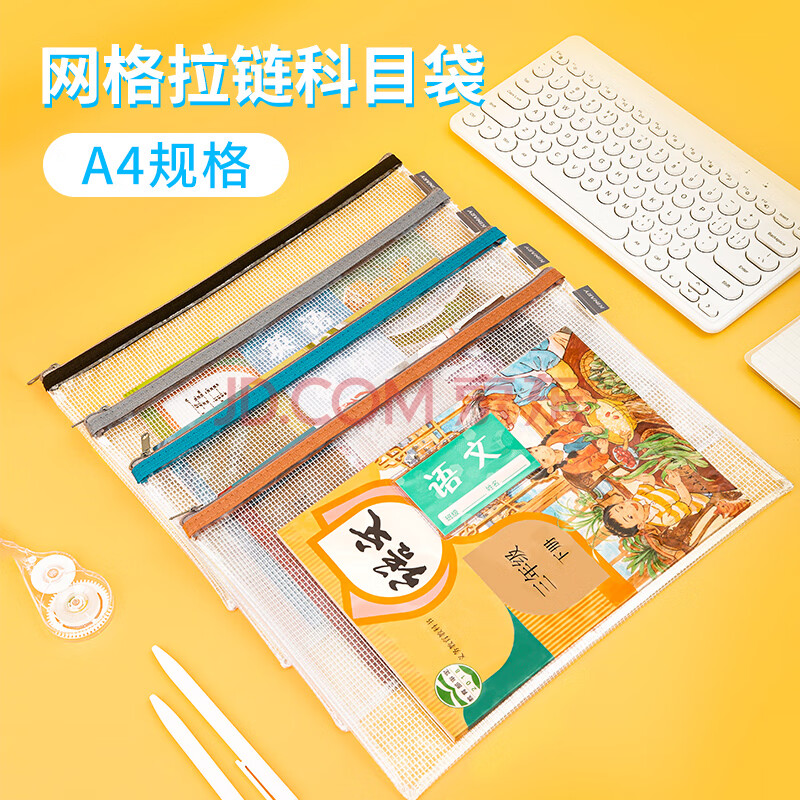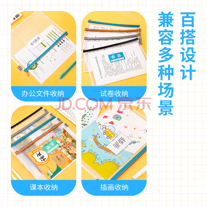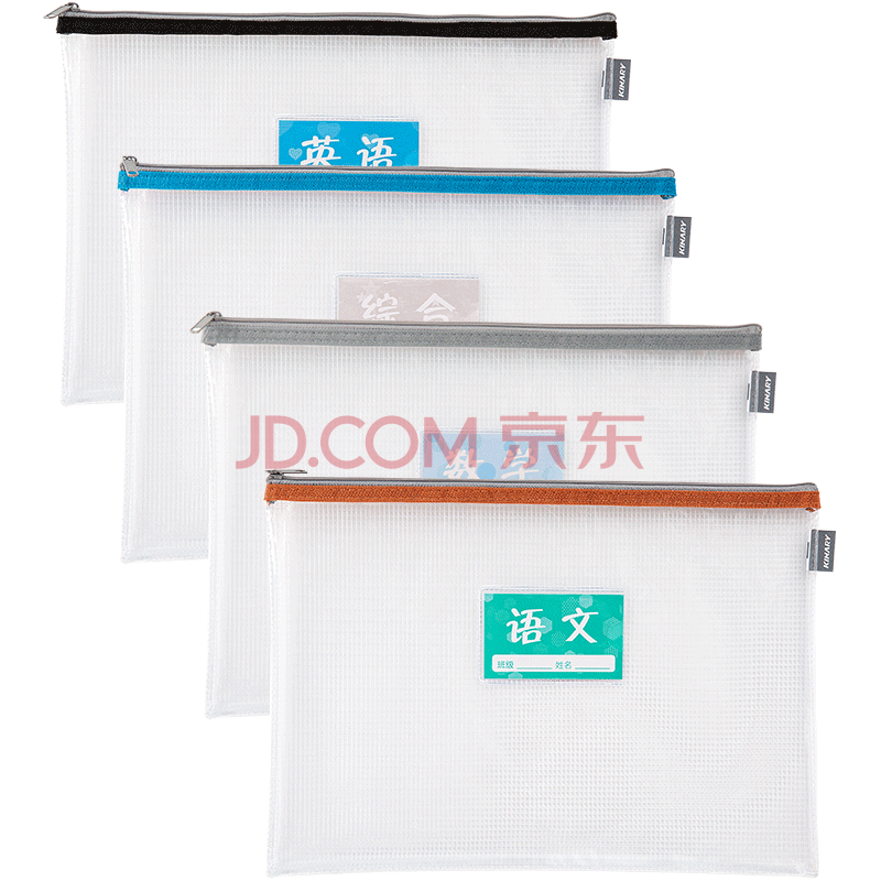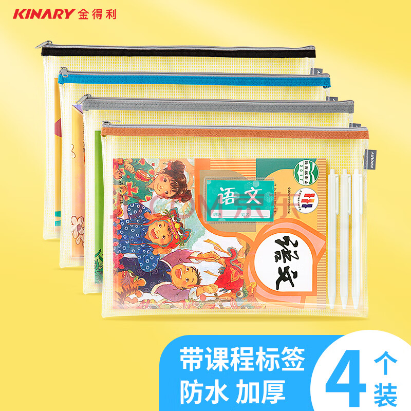 商品相册:金得利4个A4透明文件袋小学初中生分科目分类袋科目袋拉链书本作业试卷收纳袋手提袋文具补习袋FB8790-4第
