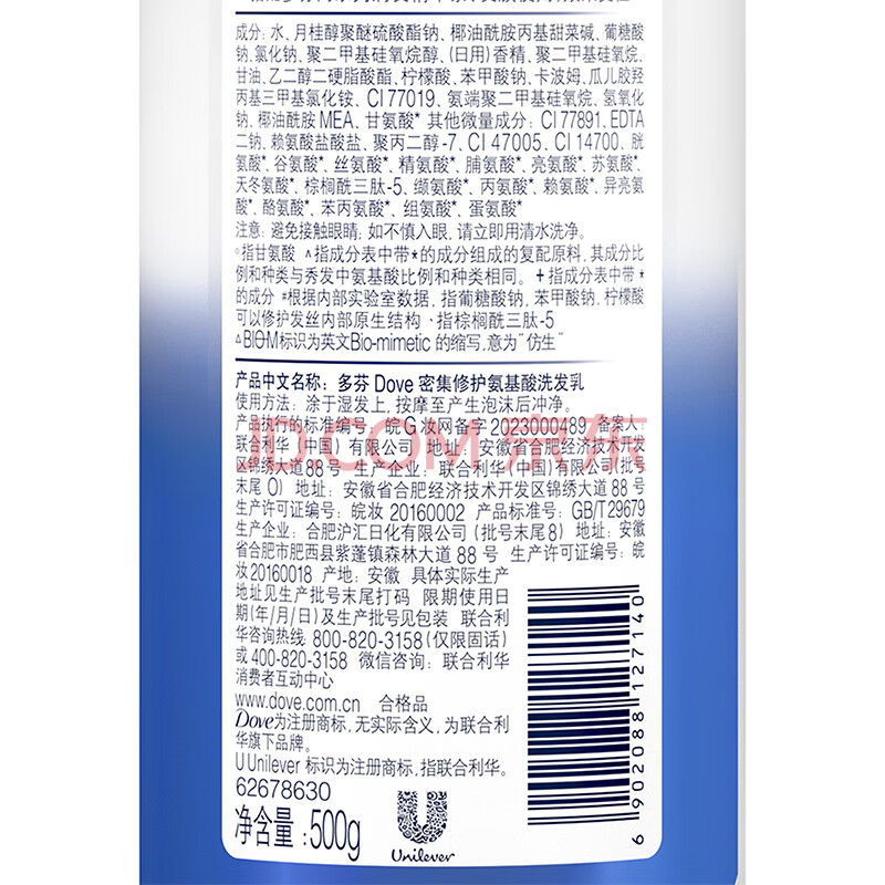 商品相册:多芬【密集滋养】氨基酸洗发水500g 干枯受损毛躁发质 京东自营第