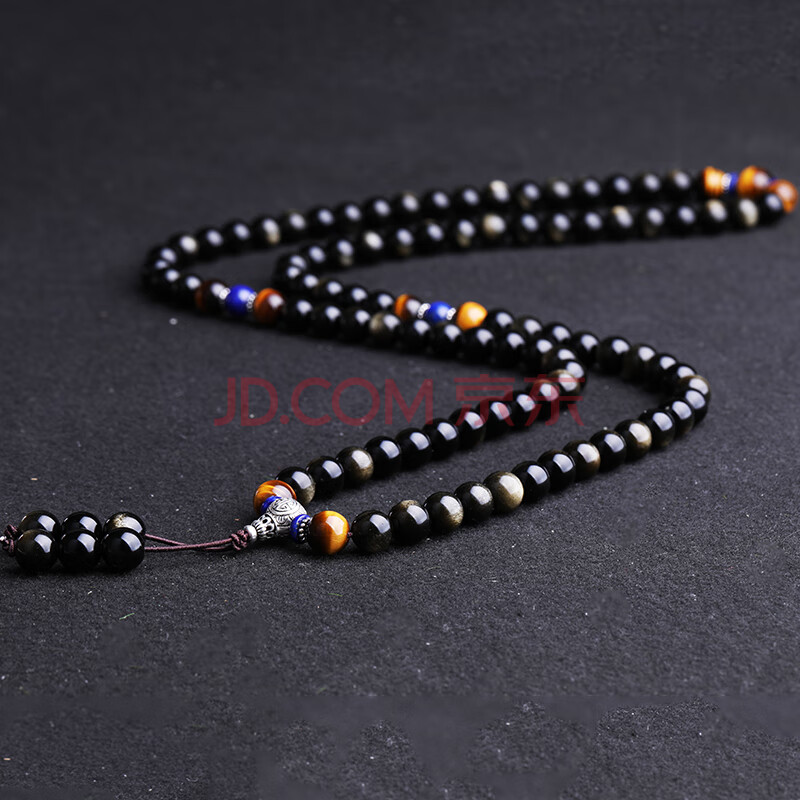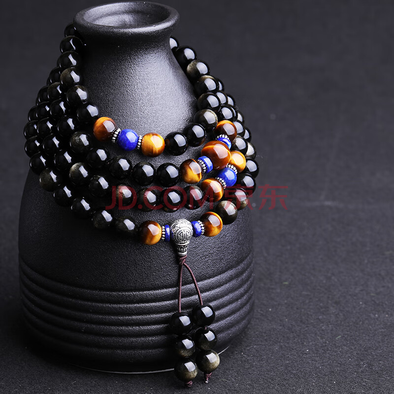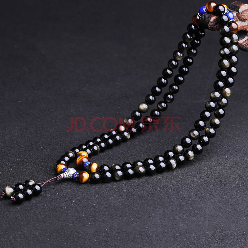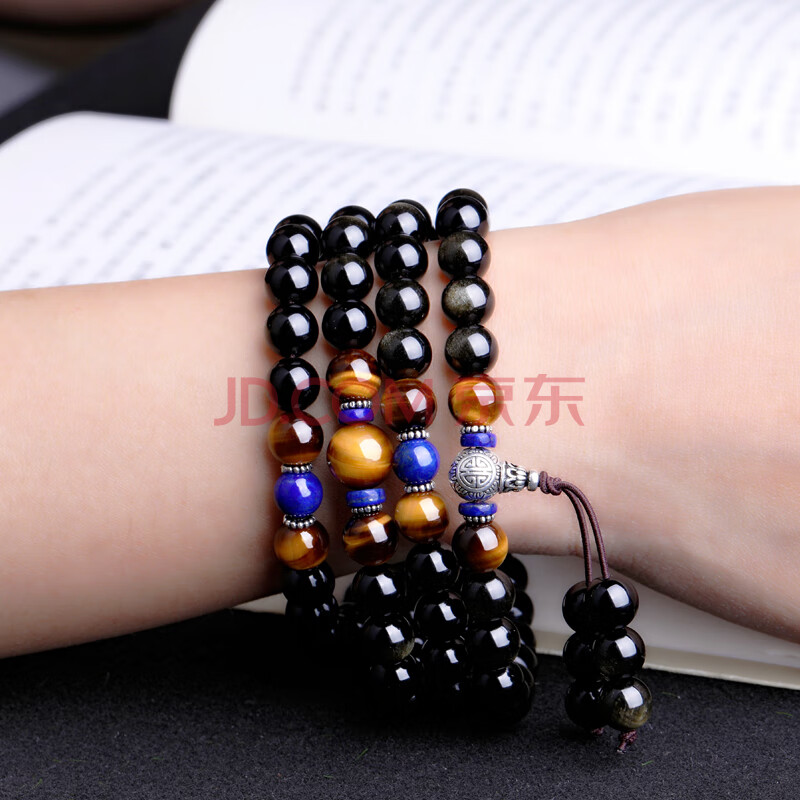 商品相册:石玥珠宝精品8mm金沙天然黑曜石手串银莲花青金石虎眼石水晶手链男女士款第