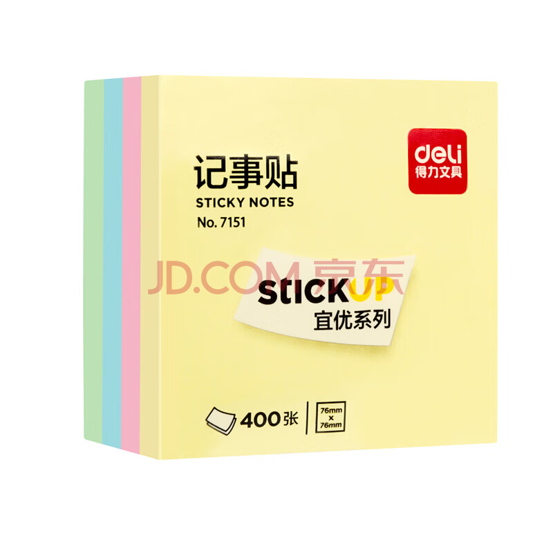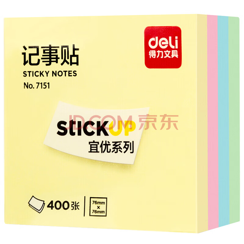 商品相册:得力(deli)7151百事贴400页4色简约便签纸便利贴 76*76mm便签本N次贴记事贴 6包【ZY】第