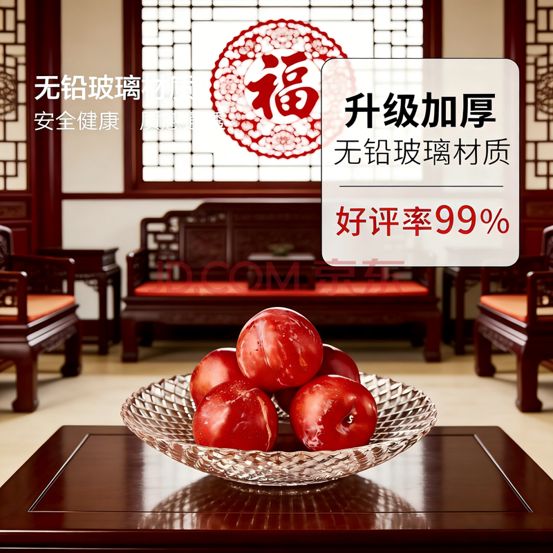 商品相册:青苹果水晶玻璃洛思系列玻璃加厚果盘 大号 32cm 12.5英寸第