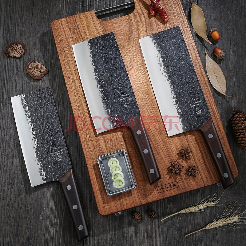 商品相册:十八子作传统手工锻打菜刀紫檀木刀具本源斩切刀S2105-AB【彩盒装】第