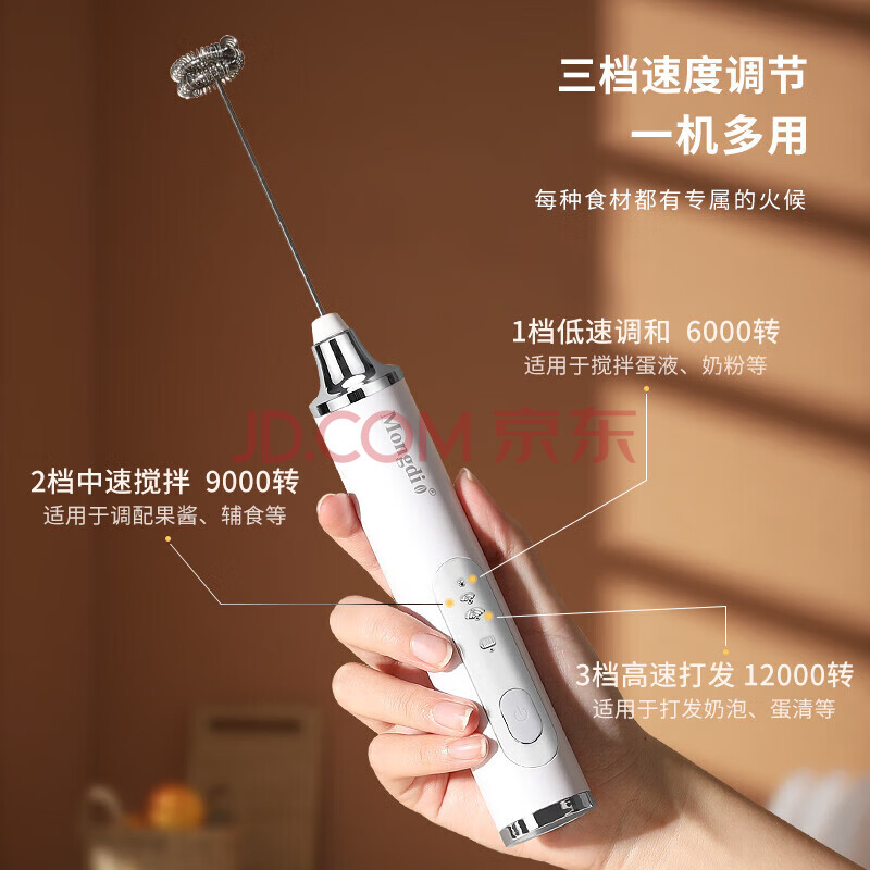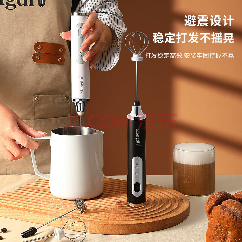 商品相册:Mongdio打奶泡器打发器打奶器打蛋器电动400次咖啡打泡器奶泡机搅拌器第1张/共9