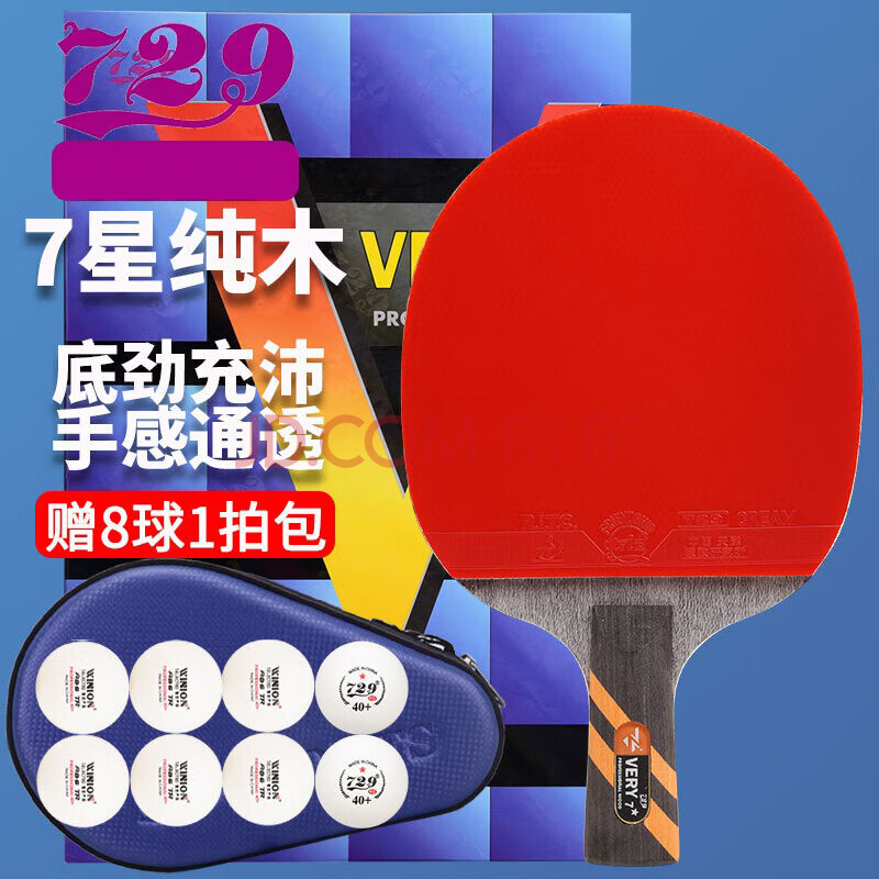 商品相册:729 乒乓球拍直拍单只短柄 7星七星VERY纯木兵乓球拍第