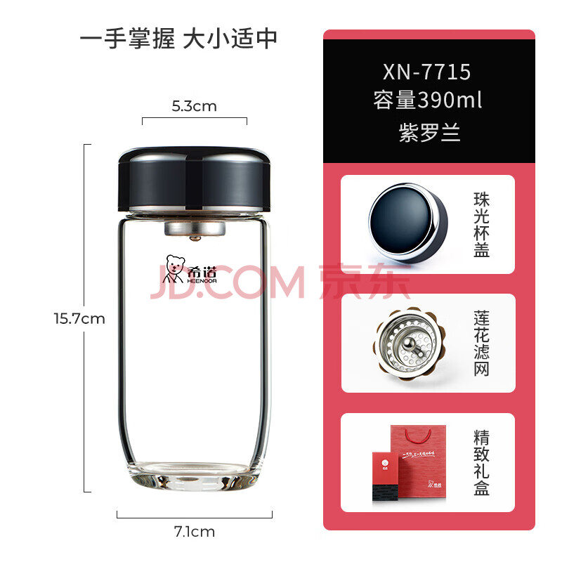 商品相册:希诺单层玻璃杯男家用办公泡茶杯子过滤车载水杯XN-7715紫罗兰 390mL第