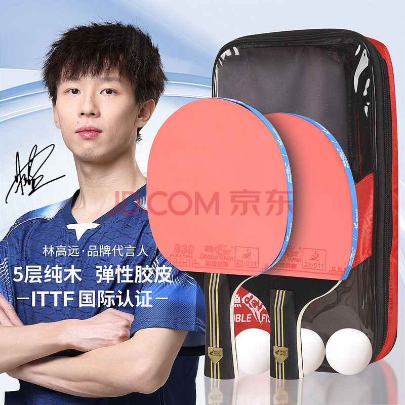 商品相册:双鱼乒乓球拍直拍横拍双拍对拍套装 娱乐型2只装K319A赠3球第