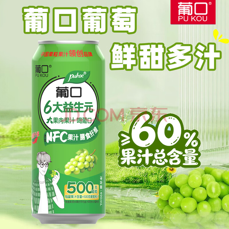 商品相册:葡口果肉饮料含NFC原果汁新鲜葡萄味爽口聚餐游玩火锅烧烤490ml*15罐第