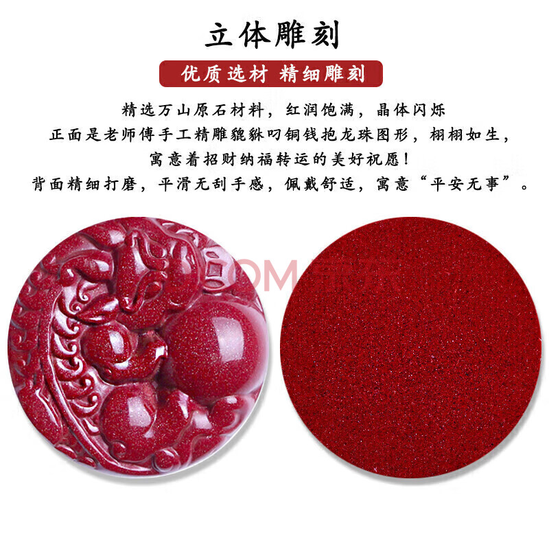 商品相册:石玥珠宝高含量紫金朱砂貔貅吊坠本命年护身符平安扣挂件男女士款礼物第