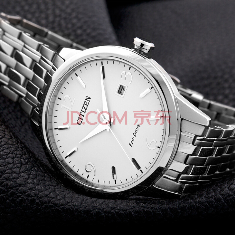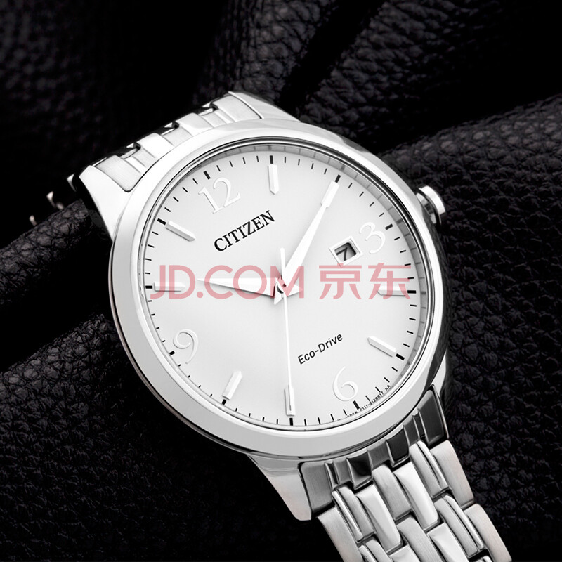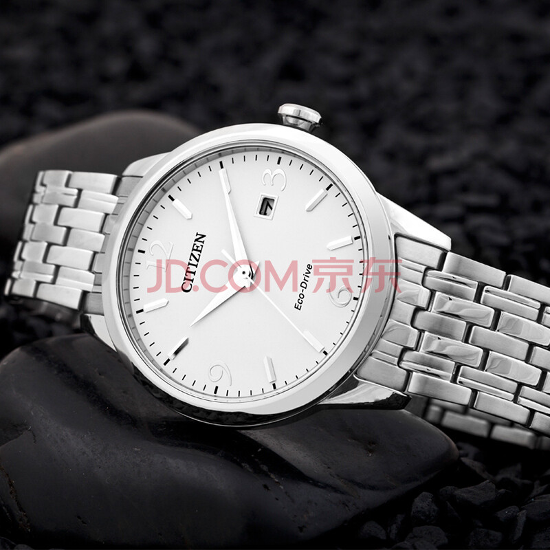 商品相册:西铁城(CITIZEN)手表男日韩表光动能白盘日显钢带极简商务送男友礼物BM7300-50A第