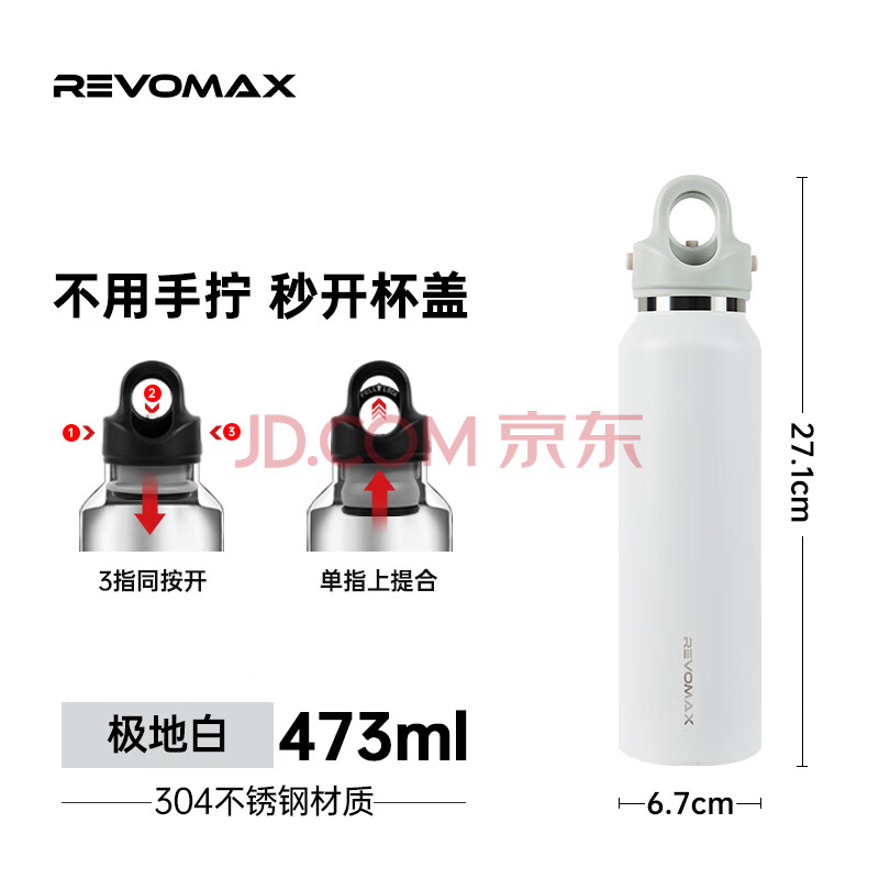 商品相册:REVOMAX锐虎无螺纹保温杯男女学生儿童保温杯上学专用喝水杯极地白473ml第