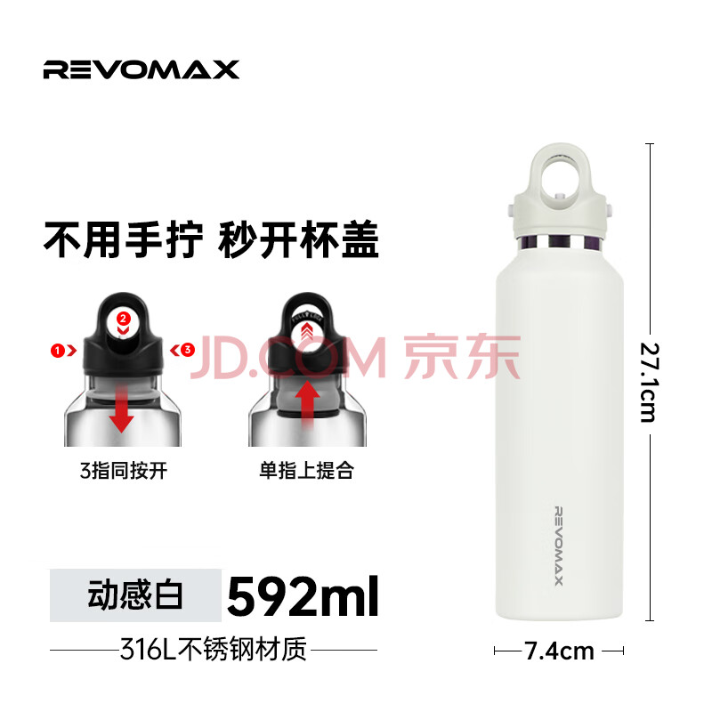 商品相册:REVOMAX保温杯女士高颜值2026新款直饮杯316不锈钢水杯子【可碳酸/动感白第