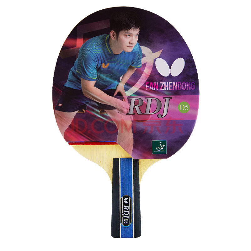商品相册:蝴蝶D5乒乓球拍单拍直拍进攻弧圈双面反胶5层板2.2厚海绵含拍包第