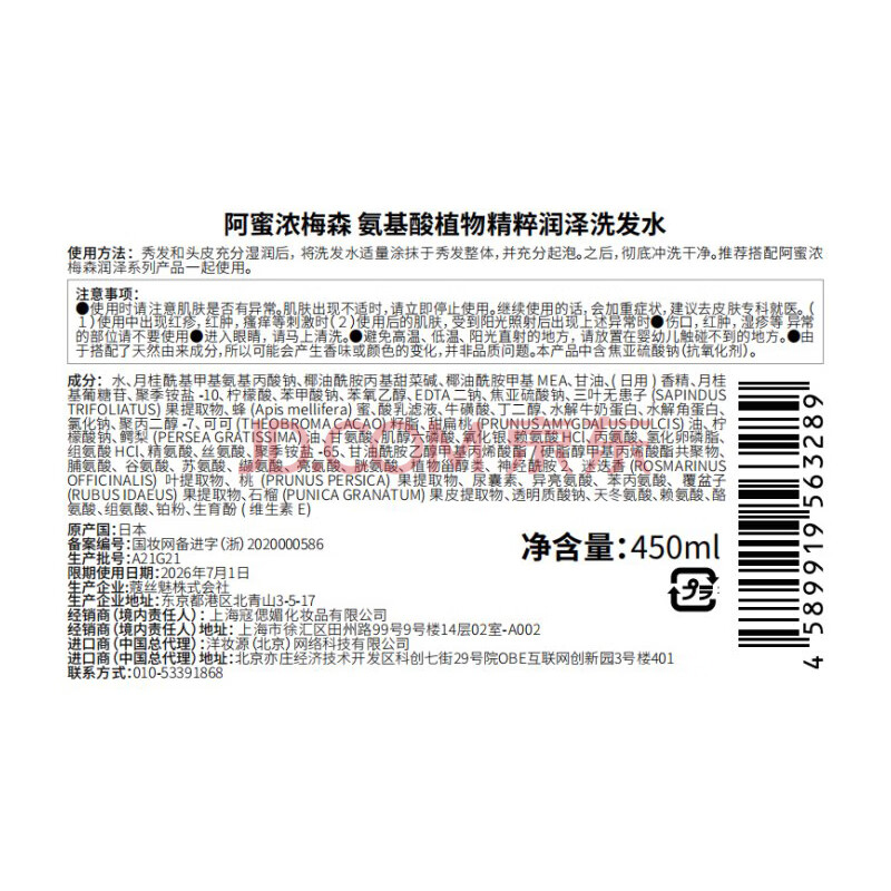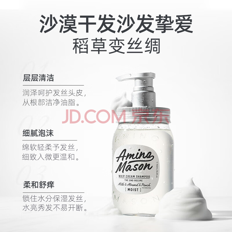 商品相册:Amino mason 阿蜜浓梅森滋养润泽氨基酸洗发水450ml 柔顺飘逸无硅油洗头膏第