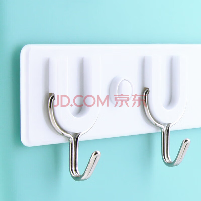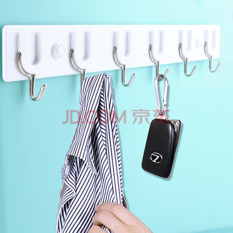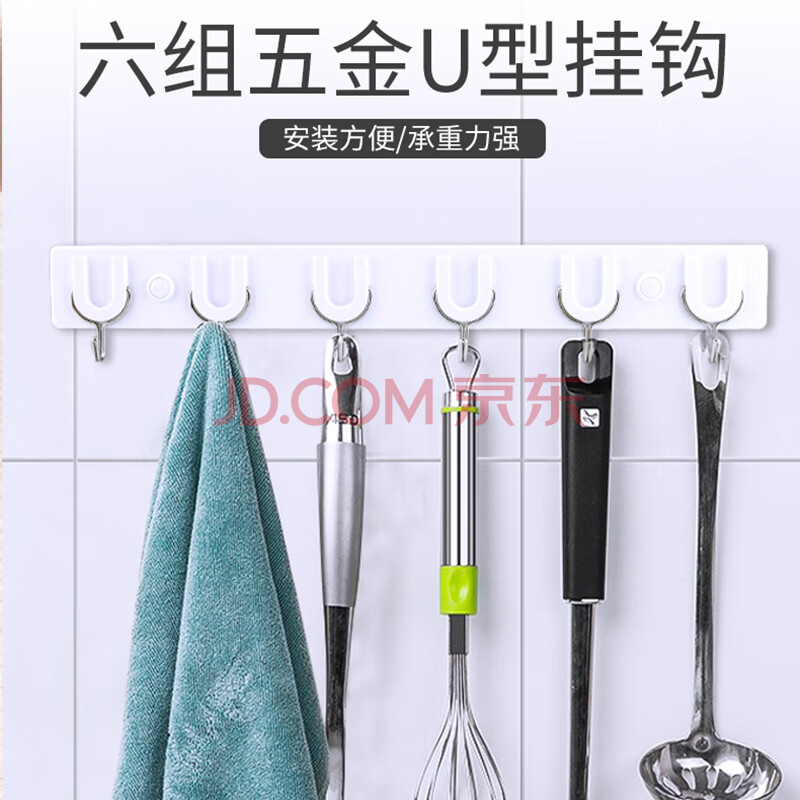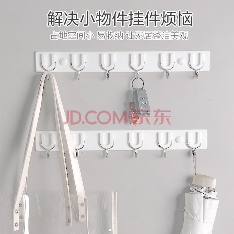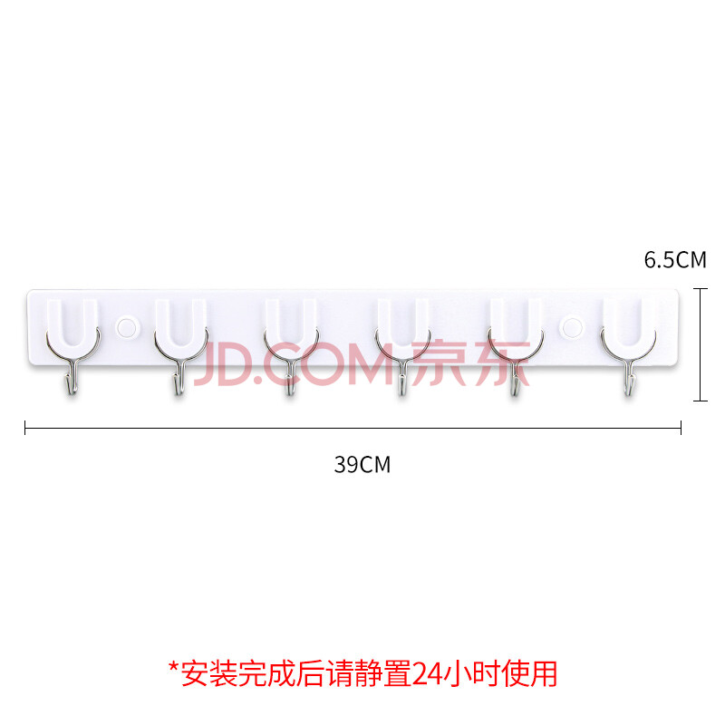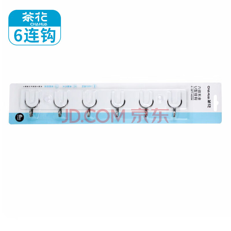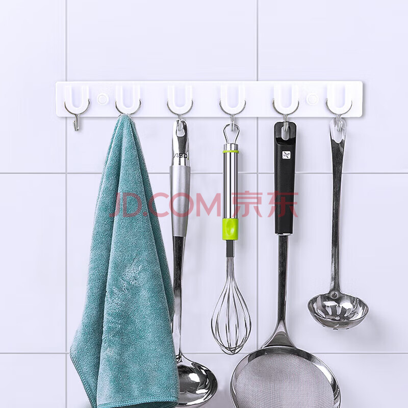 商品相册:茶花挂钩排钩 免钉浴室门后粘钩挂衣架 卫生间毛巾强力挂钩 39cm 6钩第