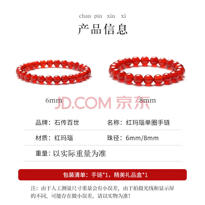 商品相册:石传百世红玛瑙手串男女款水晶玛瑙情侣手链时尚饰品本命年生日礼物第1张/共9