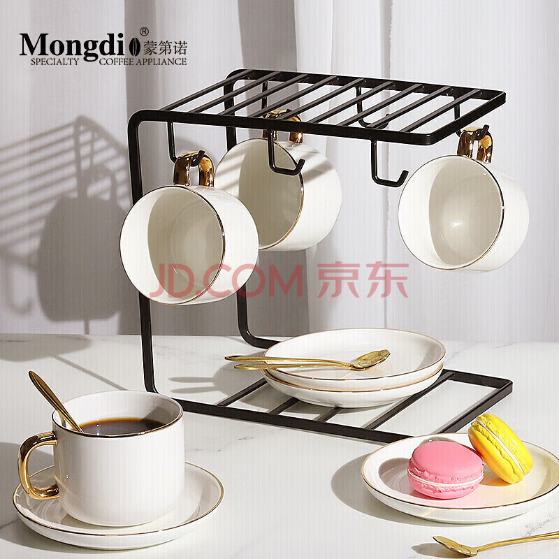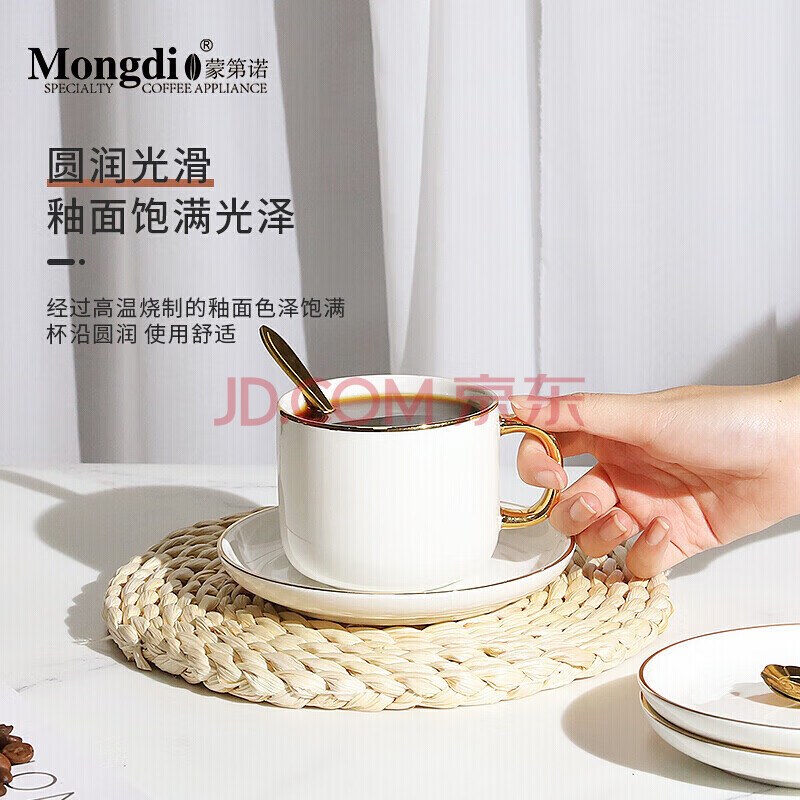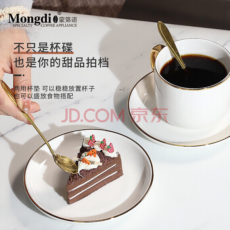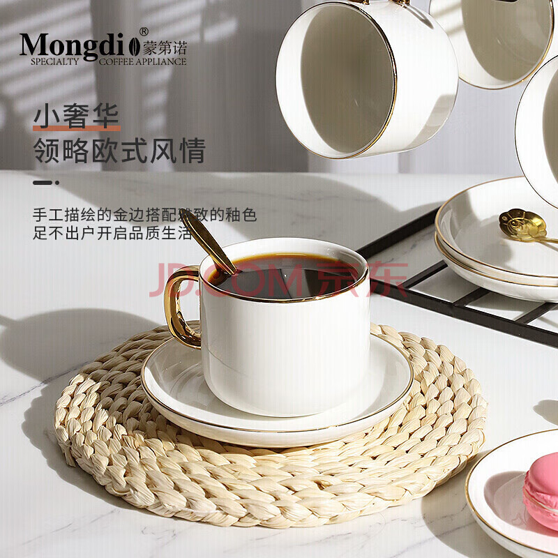 商品相册:Mongdio咖啡杯套装纯白欧式小奢华描金咖啡杯陶瓷杯礼盒装第