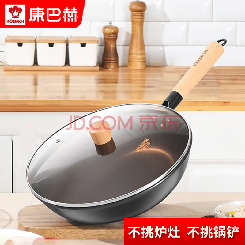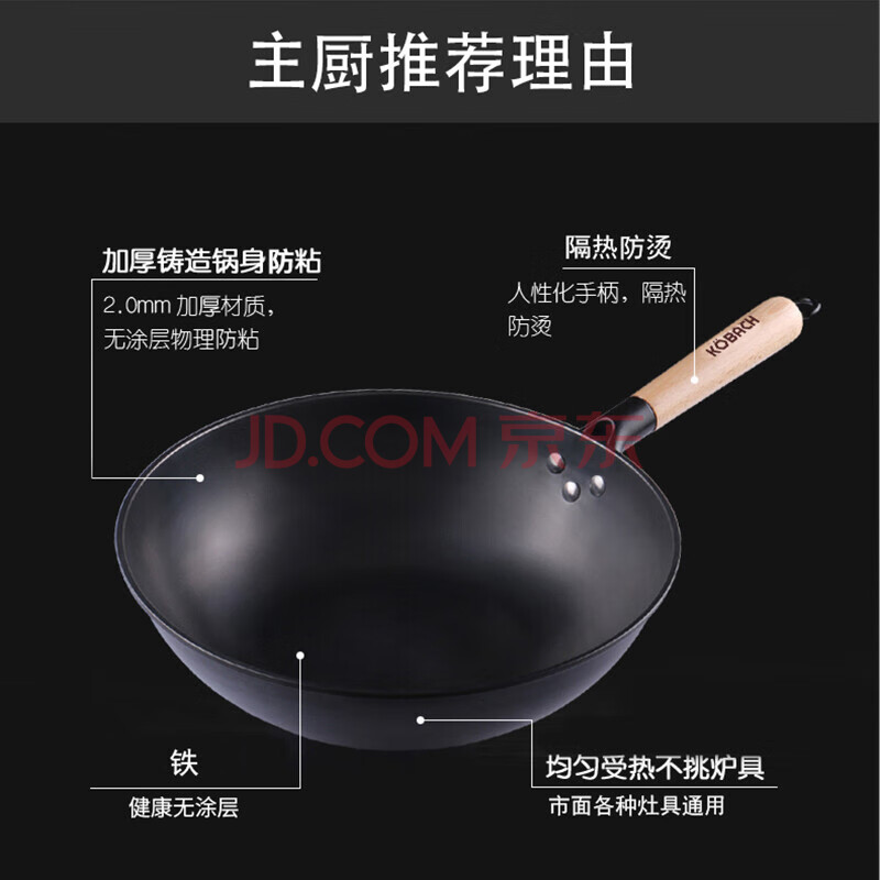 商品相册:康巴赫(KBH) 老铁锅CZH32A1 无涂层炒锅 精铁不沾锅32cm电磁炉燃气灶通用第