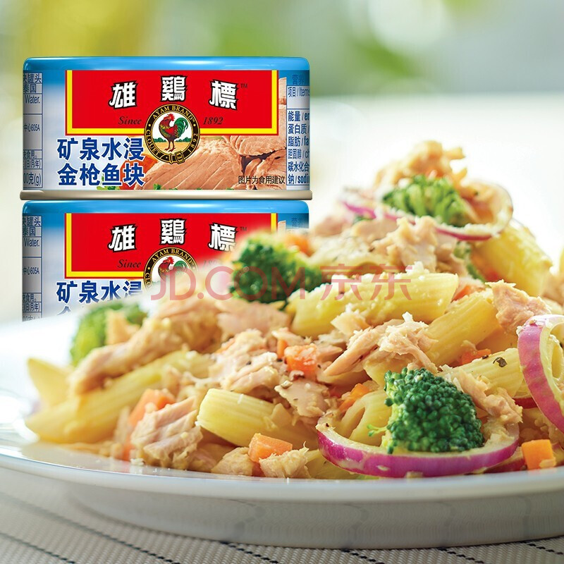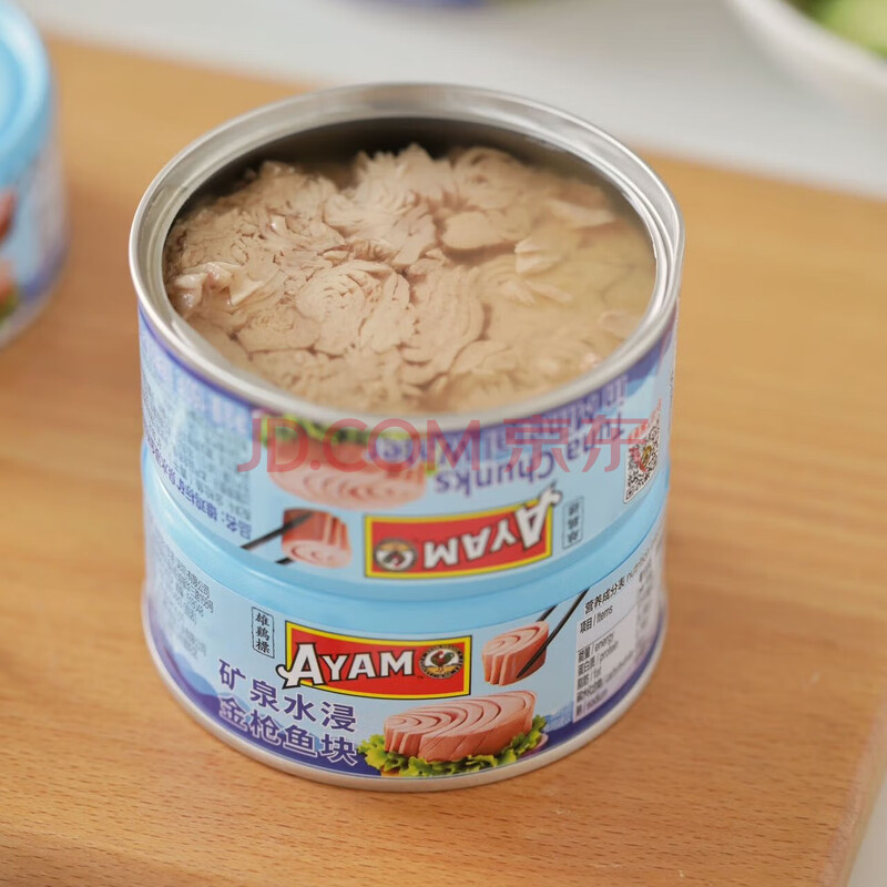 商品相册:雄鸡标(AYAM BRAND)矿泉水浸金枪鱼块罐头150g*2 即食吞拿鱼高蛋白代餐第