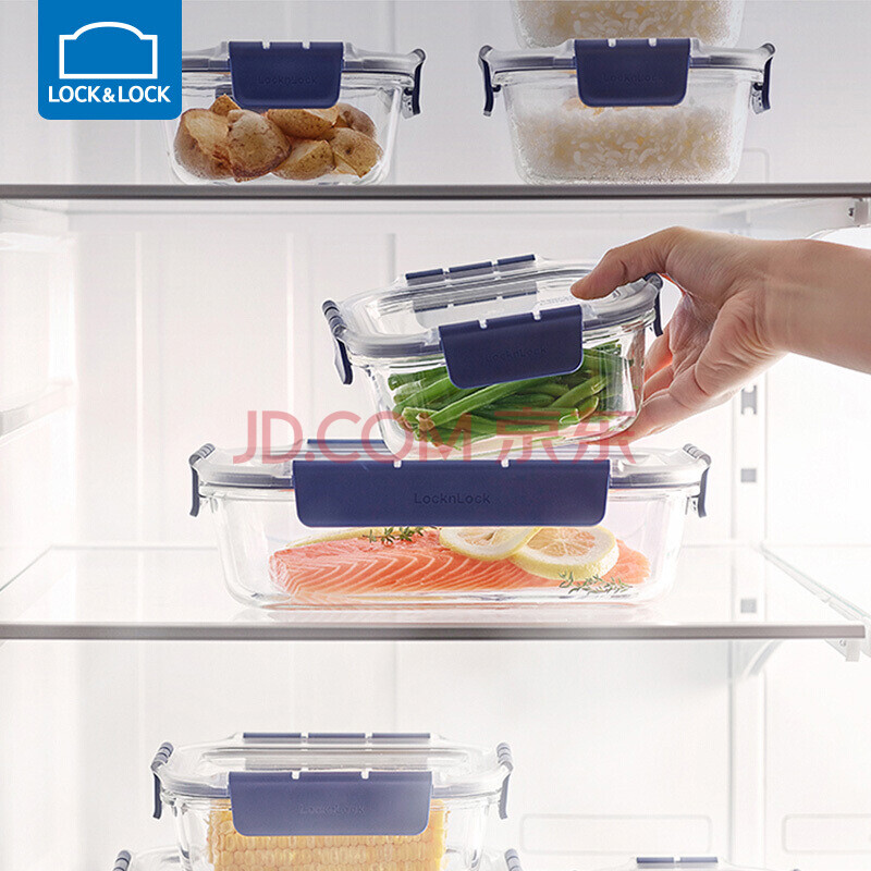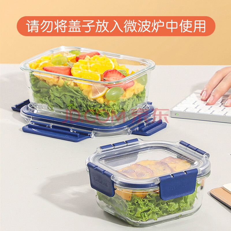 商品相册:乐扣乐扣 密封玻璃保鲜盒 冰箱收纳盒便当盒厨房保鲜食品盒长方形630ML第