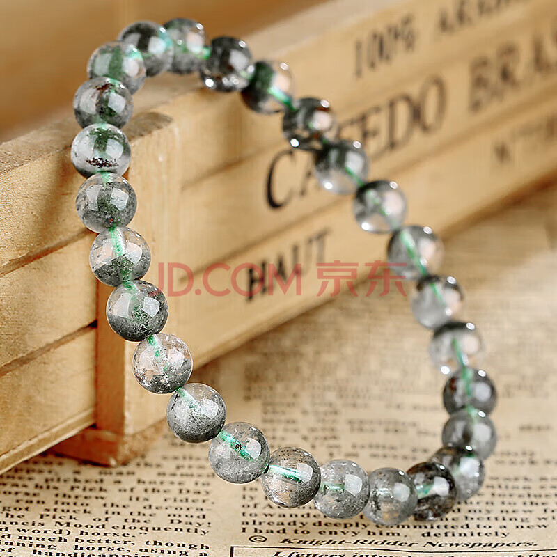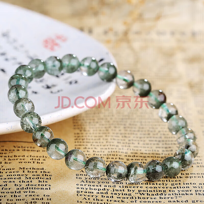 商品相册:石玥珠宝精品5-6mm天然绿幽灵手串本命年转运珠手链男女士款 水晶玛瑙第