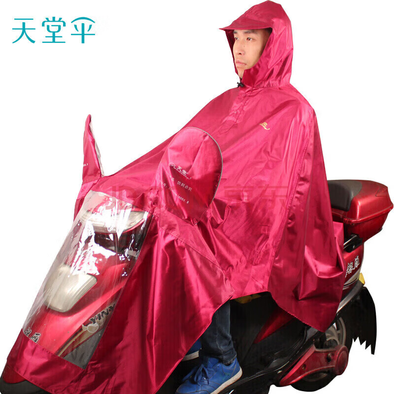 商品相册:天堂 户外骑行雨衣雨披单人连体加厚牛津布电瓶车摩托车雨披 均码酱红第1张/共2