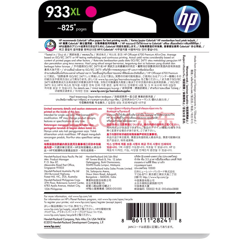 商品相册:惠普(HP)933XL(CN055AA)原装墨盒 红色(盒)(适用: Officejet 7110/7510/7612)辨假服务第