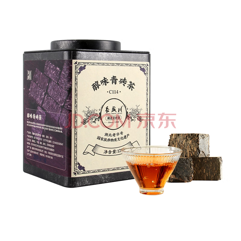 商品相册:長盛川茶叶黑茶 醇味青砖茶120g罐装 2014年老料砖茶切块内蒙奶茶自己喝第
