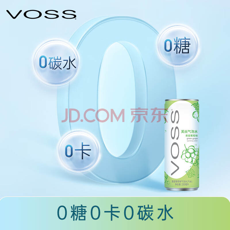商品相册:芙丝(VOSS)气泡水(汽水) 青提葡萄味 330ml*12罐 整箱装 0糖0卡0碳水第