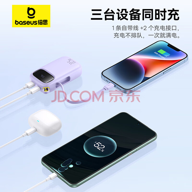 商品相册:倍思【国标3C认证】充电宝10000毫安22.5W自带Type-C线移动电源可上飞机适用于苹果华为小米手机第